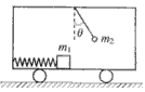 4、选择题 在水平地面上运动的小车车厢底部有一质量为m1的木块,木块和车厢通过一根水平轻弹簧相连接,弹簧的劲度系数为k。在车厢的顶部用一根细线悬挂一质量为m2的小球。某段时间内发现细线与竖直方向的夹角为θ,在这段时间内木块与车厢也保持相对静止,如图所示。不计木块与车厢底部的摩擦力,在这段时间内弹簧的形变量为x,细线对小球的拉力为T,则