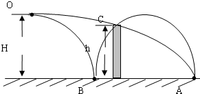 5、简答题 一位网球运动员以拍击球,使网球沿水平方向飞出.第一只球落在自己一方场地上后,弹跳起来,刚好擦网而过,落在对方场地的A点处.如图所示.第二只球直接擦网而过,也落在A点处.设球与地面的碰撞是完全弹性碰撞,且不计空气阻力,试求运动员击球点的高度H与网高h之比