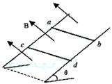 5、计算题 两根相距d=0.20m的平行光滑金属长导轨与水平方向成30°角固定,匀强磁场的磁感强度B=0.20T,方向垂直两导轨组成的平面,两根金属棒ab、cd互相平行且始终与导轨垂直地放在导轨上,它们的质量分别为m1=0.1kg,m2=0.02kg,两棒电阻均为0.20Ω,导轨电阻不计,如图所示。
