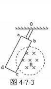 闭合线圈abcd用绝缘硬竿悬于O点,虚线表示有界磁场B。把线圈从图示位置释放后使其摆动,不计其他阻力,线圈将很快就停在竖直方向平衡而不再摆动,这是为什么?