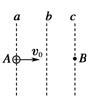 1、选择题  如图所示,a、b、c三条虚线为电场中的等势面,等势面b的电势为零,且相邻两个等势面间的电势差相等,一个带正电的粒子在A时的动能为10J,在电场力作用下从A运动到B速度为零,当这个粒子的动能为7.5J时,其电势能为?  (  )