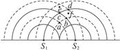 1、填空题 如图所示,S1、S2是两个同向的相干波源,相距4m,激起两列相干波的波长均为A=2 m,则在以S1、S2连线为半径,S2为圆心的圆周上共有_______ 处振动最弱的点。