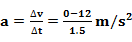 4、计算题 在平直公路上,以速度v0 ="12" m/s匀速前进的汽车,遇紧急情况刹车后,轮胎停止转动在地面上匀减速滑行,经过时间t=1.5s汽车停止.求: