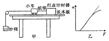 3、实验题 (4分)如图甲所示,在探究加速度与力、质量的关系的实验中,用装有沙子的小桶通过细线绕过定滑轮拉着小车在长木板上作匀加速直线运动,通过改变沙的质量的办法来改变小车受到的作用力F。用打点计时器打出的纸带测出小车的加速度a,得出若干组F和a的数据,然后根据测得的数据作出如图乙所示的a-F图线,发现图线既不过原点又不是直线,其可能的原因是____________。
