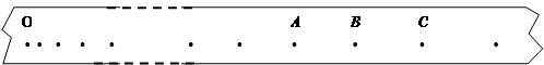 4、实验题 在验证机械能守恒定律的实验中,质量m=1kg的重锤由静止下落,在纸带上打出了一系列的点,如图所示,相邻点之间的时间间隔为T=0.02s,O点为静止开始的第一个点,OA=19.60cm,OB=23.70cm,OC=28.20cm,g取10m/s2,求: