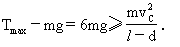 另依题意细绳上能承受的最大拉力不能超过7mg,由于在最低点C,绳所受拉力最大,故应以C点为研究对象,并有