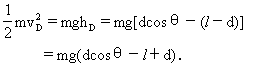 其中vD为D点速度,vD可由机械能守恒定律求知,取O点为重力势能的零势能位置,则
