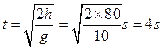 点评:中等难度。本题主要考查自由落体运动位移公式的应用。