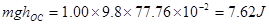 本题解析:下落过程中物体做加速运动,所以相同时间内的位移逐渐增大,则重物连在O端,重物由O点运动到C点,重力势能的减少量,C点速度为