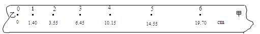 (2)打出的纸带如图所示,实验时纸带的______端应和重物相连接。(选填“甲”或“乙”)