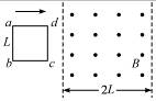 4、选择题  如图 3-5-18 所示,有一宽为 2L 的匀强磁场区域,磁感应强度为 B,方向垂直纸面向外.abcd 是由均匀电阻丝做成的边长为 L 的正方形线框,总电阻值为 R.线框以垂直磁场边界的速度 v 匀速通过磁场区域,在整个运动过程中,线框 ab、cd 两边始终与磁场边界平行.则(?)