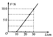 4、填空题 某同学在做研究弹簧的形变与外力的关系实验时,将一轻质弹簧竖直悬挂,让其自然下垂,测出其自然长度;然后在其下部施加外力F,测出弹簧的总长度L,改变外力F的大小,测出几组数据,作出外力F与弹簧总长度L的关系图线,如图所示。(实验过程是在弹簧的弹性限度内进行的)由图可知该弹簧的自然长度为____cm,该弹簧的劲度系数为____N/m。