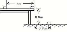 5、计算题 如图所示,一质量为0.6kg的小物块,静止在光滑水平桌面上,桌面距地面高度为0.8m,用一水平向右的恒力F推动小物块,使物体向右运动,运动2m后撤去恒力F,小物块滑离桌面做平抛运动落到地面,平抛过程的水平位移为0.8m。不计空气阻力,重力加速度