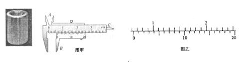 1、实验题 (1)要测量下图中螺母的深度,应该用图甲游标卡尺的A、B、C中的?部分,读数如图乙所示,其深度为?cm。