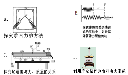 5、选择题 物理学中用到大量的科学研究方法,在推导匀变速直线运动位移公式时,把整个运动过程等分成很多小段,每一小段近似看作匀速直线运动,然后把各小段的位移相加,这是物理学中常用的微元法。如图所示的四个实验中,哪一个采用了微元法