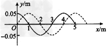 5、计算题 如图所示,实线为简谐波在t时刻的图线,虚线为波在(t+0.01)s时刻的图线