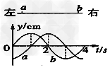 2、选择题 一列简谐横波沿直线ab向右传播,a、b之间的距离为2m,a、b两点的振动情况如图所示,下列说法中正确的是