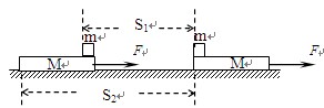 3、选择题 在光滑的水平面上,质量为m的小滑块停放在质量为M、长度为L的静止的长木板的最右端,滑块和木板之间的动摩擦因数为?。现用一个大小为F的恒力作用在M上,当小滑块滑到木板的最左端时,滑块和木板的速度大小分别为V1、V2,滑块和木板相对地面的位移大小分别为S1、S2.下列关系式错误的是(?)