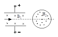 1、填空题 如图是等离子体发电机示意图,平行金属板间的匀强磁场的磁感应强度B=0.5T,两板间距离为20cm,要使输出电压为220V,则等离子体垂直射入磁场的速度v=?m/s。a是电源的?极。