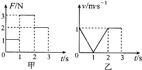 1、选择题 一物块在水平地面上沿直线滑行,t=0时其速度为1m/s.从此刻开始在物块运动方向上再施加一水平作用力F,力F与物块的速度v随时间变化的规律分别如图甲、乙所示.则下列说法中正确的是( )