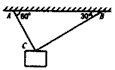 1、计算题 如图所示,用轻绳AC和BC悬挂一重物,绳与水平天花板夹角分别为60°和30°,若物体重200N,求:AC绳和BC绳所受拉力的大小。