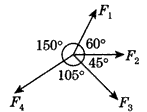 4、计算题 如图所示,力F1、F2、F3、F4在同一平面内构成共点力,其中F1=20 N、F2=20 N、F3=N、F4=