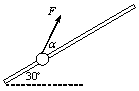 2、填空题 如图,固定于竖直面内的粗糙斜杆,与水平方向夹角为30°,质量为m的小球套在杆上,在大小不变的拉力作用下,小球沿杆由底端匀速运动到顶端。为使拉力做功最小,拉力F与杆的夹角α=__________,拉力大小F=____________。