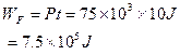 5、简答题 质量为5t的汽车以恒定的输出功率75kW在一条平直的公路上由静止开始行驶,在10s内速度达到10m/s,求摩擦阻力在这段时间内所做的功。
