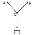 1、实验题 (6分)某同学在家中尝试验证平行四边形定则,他找到三条相同的橡皮筋(遵循胡克定律)和若干小重物,以及刻度尺、三角板、铅笔、细绳、白纸、钉子,设计了如下实验:将两条橡皮筋的一端分别挂在墙上的两个钉子A、B上,另一端与第二条橡皮筋连接,结点为O,将第三条橡皮筋的另一端通过细绳挂一重物,如图.
