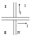 选择题 彼此绝缘、互相垂直放置的两通电直导线中电流方向来源:91考试网 91ExAm.org如图所示,在两导线周围空间磁场较强的区域在A.Ⅰ区B.Ⅱ区C.Ⅲ区D.Ⅳ区