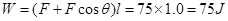 选择题 某人用50N的恒力F,通过动滑轮把重物拉上斜 面,如图所示,用力方向始终与斜面成600角。将物体沿斜面向上移动1.0m,他所做的功A.25JB.50JC.75JD.条件不足,无法计算本题答案:C本题解析:选C。