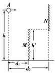 选择题&n bsp; 如图所示,M、N是两块挡板,挡板M高h′=10 m,其上边缘与挡板N的下边缘在同一水平面,从高h=15 m的A点以速度v0水平抛出一小球,A点与两挡板的水平距离分别为d1=10 m,d2=20 m.N板的上边缘高于A点.若能使小球直接进入挡板M的右边区域,则小球水平抛出的初速度v0的大小可能是下列给出数据中的哪一个