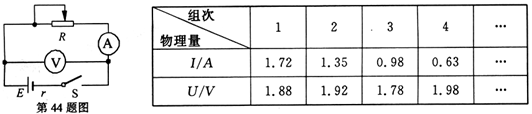 选择题 某同学做“测定电池的电动势和内阻”实验,电路如图所示.测得电流与路端电压的数据见 下表:其中存在测量错误的数据是A.第1组B.第2组C.第3组D.第4组
