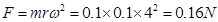 2、计算题 一个圆盘在水平面内匀速转动,角速度是4rad/s。盘面上距圆盘中心0.10m的位置有一个质量为0.10kg的小物体在随圆盘一起做匀速圆周运动,求小物体所受向心力的大小。