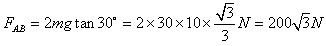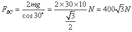 根据牛顿第三定律可得:绳AB所受的力大小为N,杆BC所受的力大小为N