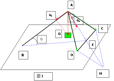 ②设?CAE=θ,三角形AEC是直角三角形,E是DC的中点,?CAD = 60°,则,把AEG2沿AC,AD方向进行受力分解,杠杆AC和AD上受到的压力分别为,由于三角形ACD是等边三角形,则有:
