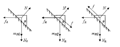 本题解析:A、B保持静止说明二者均受力平衡,可知A与B接触面之间必然存在摩擦力,所以B一定会受到重力、A的压力、A的摩擦力、斜面的摩擦力四个力的作用,这四个力沿斜面方向的合力决定B会不会受到斜面的摩擦力,因此,B的受力情况可能有下图三种可能:
