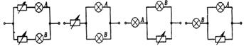 4、选择题 如图所示,额定电压为110V的两盏电灯,额定功率分别为PA=100W,PB=25W.把它们接到220V的电路上,欲使它们都能正常发光且耗电最少,应采用的接法是
