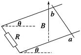 3、选择题 处于竖直向上匀强磁场中的两根电阻不计的平行金属导轨,下端连一电阻R,导轨与水平面之间的夹角为θ.一电阻可忽略的金属棒ab,开始时固定在两导轨上某位置,棒与导轨垂直.如下图所示,现释放金属棒让其由静止开始沿轨道平面下滑.就导轨光滑和粗糙两种情况比较,当两次下滑的位移相同时,则有( ).