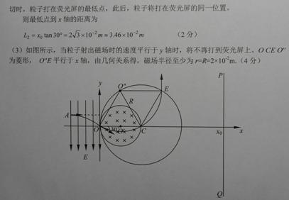 (3)若改变磁场半径,磁场最左边仍然与Y轴相切于O点,当磁场半径至少为多大时,粒子就再也不能打到带屏上?