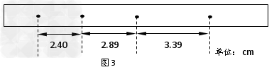(3)图3为某次实验得到的纸带,纸带上标出了所选的四个计数点之间的距离,相邻计数点间还有四个点没有画出。由此可求得小车的加速度的大小是_________m/s2。(结果保留二位有效数字)