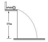 1、计算题  (12分)如图所示,在高15m的平台上,有一个小球被细线拴在墙上,球与墙之间有一被压缩的轻弹簧,当细线被烧断时,小球被弹出,不计一切阻力,(1)小球在空中运动的时间是多少?(2)已知小球落地时速度方向与水平成60°角,求小球被弹簧弹出时的速度大小?(3)小球落地时小球在水平方向的位移多大?()