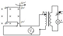 4、选择题 自耦变压器铁芯上只绕有一个线圈,原、副线圈都只取该线圈的某部分,一升压式自耦调压变压器的电路如图所示,其副线圈匝数可调.已知变压器线圈总匝数为1900匝;原线圈为1100匝,接在有效值为220V的交流电源上.当变压器输出电压调至最大时,负载R上的功率为2.0kW.设此时原线圈中电流有效值为I1,负载两端电压的有效值为U2,且变压器是理想的,则U2和I1分别约为( )