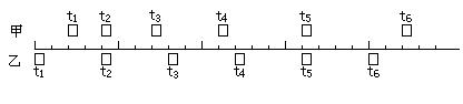 4、计算题 (6分)两木块甲和乙自左向右运动,现用高速摄影机在同一底片上多次曝光,记录下木块每次曝光时的位置,如图所示.连续两次曝光的时间间隔是0.1s.已知乙作v=0.4 m/s的匀速直线运动.求: