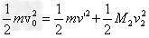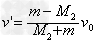 当m<M2时v"<0,当v"的大小不大于v1时m不能再追上A