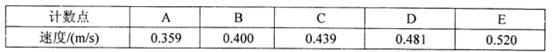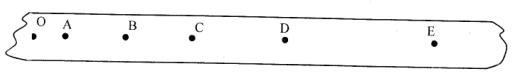 2、实验题 某同学在探究小车速度随时间变化的规律时,对打出的一条纸带进行研究,从O点开始,每隔5个点作为一个计数点(中间四个点未画出),如图所示,计数点分别为A、B、C、D、E,该同学已求出各计数点对应的速度,其数值见表