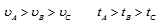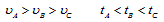 3、选择题  在同一点抛出的三个物体,做平抛运动的轨迹如图所示,则三个物体做平抛运动的初速度的关系和三个物体做平抛运动的时间的关系分别是