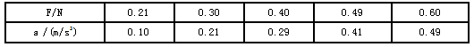 小车搁置在水平放置的长木板上,纸带连接车尾并穿过打点计时器,用来测定小车的加速度a,小桶通过细线对小车施拉力F。在保持小车质量不变的情况下,改变对小车拉力F的大小,测得小车所受拉力F和加速度a的数据如表:
