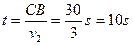 4、简答题 如图所示,公路上一辆汽车以v1=10m/s的速度匀速行驶汽车,行至A点时,一人为搭车从距公路30m的C处开始以v2=3m/s的速度正对公路匀速跑去,司机见状刹车,汽车做匀减速运动,结果人到达B点时,车也恰好到达B点停止。已知AB=80m,求汽车在距A多远处开始刹车?