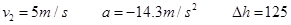2、计算题 跳伞运动员做低空跳伞表演,他离开飞机后先做自由落体运动,当距离地面 125 m打开降落伞,伞张开后运动员就以14.3 m/s2的加速度做匀减速运动,到达地面时速度为5 m/s,问: